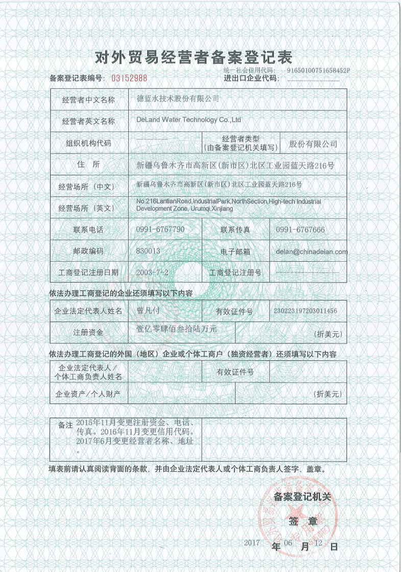 德藍(lán)對(duì)外貿(mào)易經(jīng)營(yíng)備案登記表